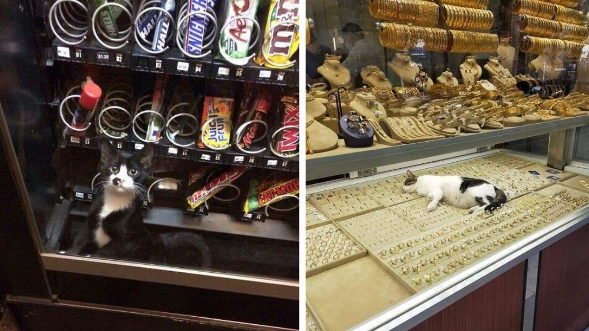 Коти чхали на те, що тут їх ніхто не чекає. Прилавки на ринках, продуктові магазини, світлофори та дорожні знаки, пральні машини і кермо автомобіля – саме у таких незвичних місцях люди помічали пухнастиків. Деякі з цих місць настільки кумедні, що важко зрозуміти, як коти взагалі змогли туди залізти.