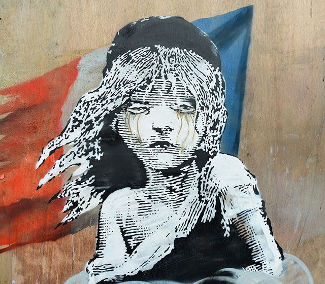 Цього разу Бенксі вирішив провести паралелі між днем сьогоднішнім і романом Віктора Гюго. Робота зображує Козетту - героїню "Знедолених",, за спиною якої майорить французький прапор,, а біля ніг розвивається сльозогінний газ.