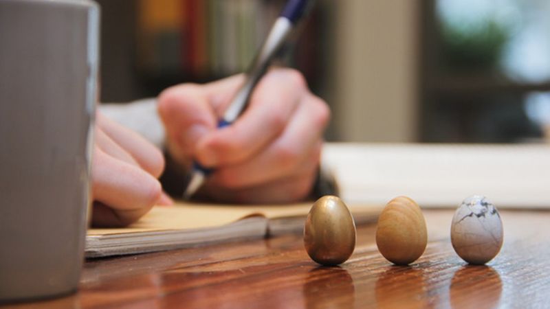Ви можете обрати для себе одну із трьох моделей яйця. Вони зроблені із дерева, латуні чи каменю. "Яйце для роздумів" має ідеальну форму, гладке та поміщається у руці чи кишені.