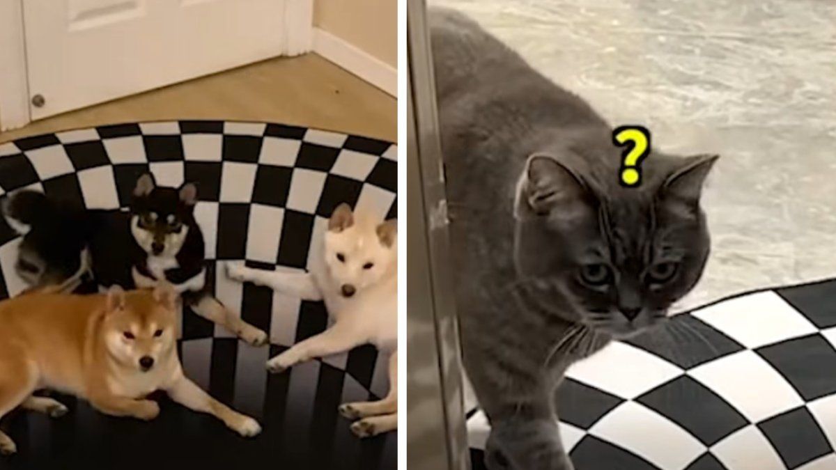 Портал в другое измерение: забавная реакция животных на ковер с иллюзией бесконечности