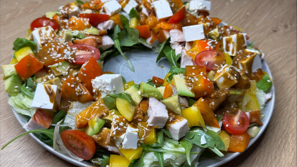 Салат-венок – это один из тех праздничных рецептов, который выглядит так эффектно, что гости точно решат: ты потратила на него полдня. На самом деле все гораздо проще – немножко зелени, немного сочных ингредиентов, минимум усилий и максимум новогодней эстетики. Яркий, свежий и очень инстаграмный – он идеально дополняет праздничное меню и создает ощущение праздника уже с первой минуты.