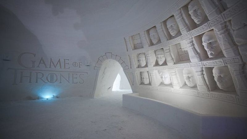 Недалеко от Хельсинки, в Киттиле, разместился великолепный отель SnowVillage, сделанный по мотивам известного сериала "Игра престолов". Построено сооружение из льда и снега, температура внутри достигает минус пяти градусов.