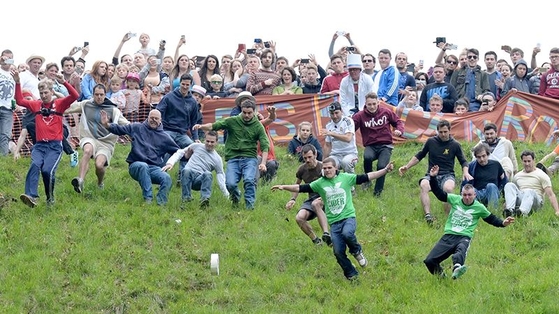 Суть затеи в том, что все фанаты сыра и веселья ежегодно собираются в последний понедельник мая на традиционную гонку.