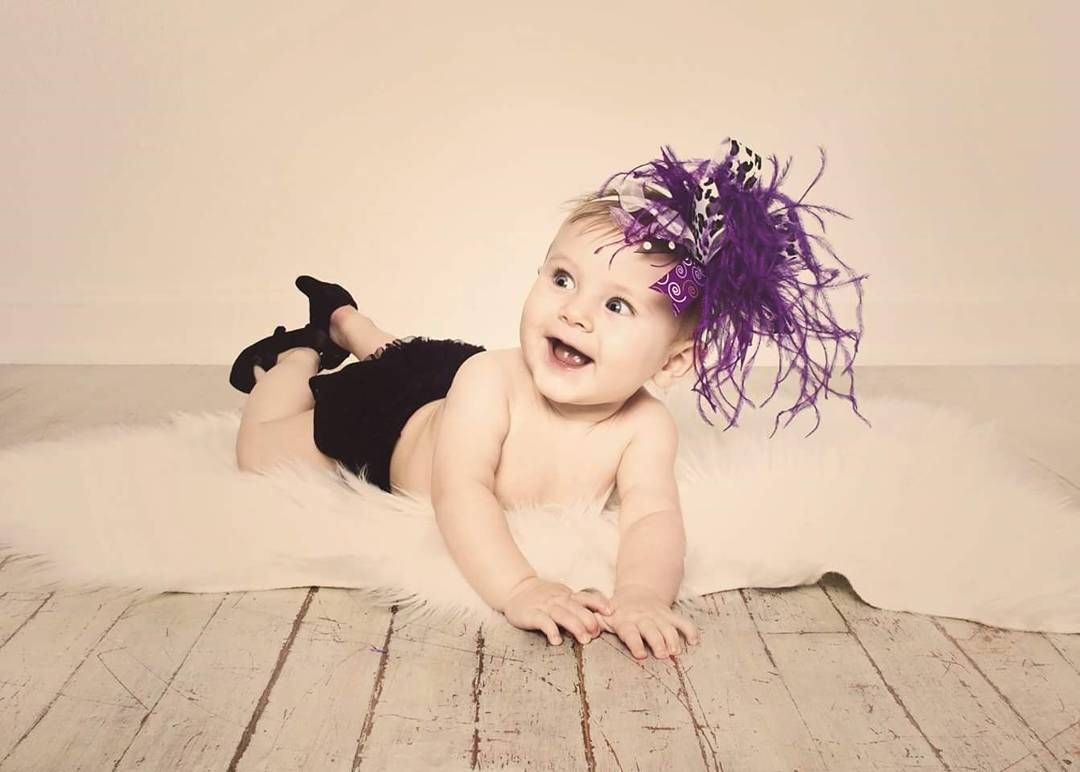 Саме взуття більше нагадує кімнатні тапочки і каблук у них теж м'який. Але для рекламної кампанії маркетологи розробили цілий образ малюків. Немовлята позують в будуарних луках - в пір'ї, перлах і леопардовому принті.