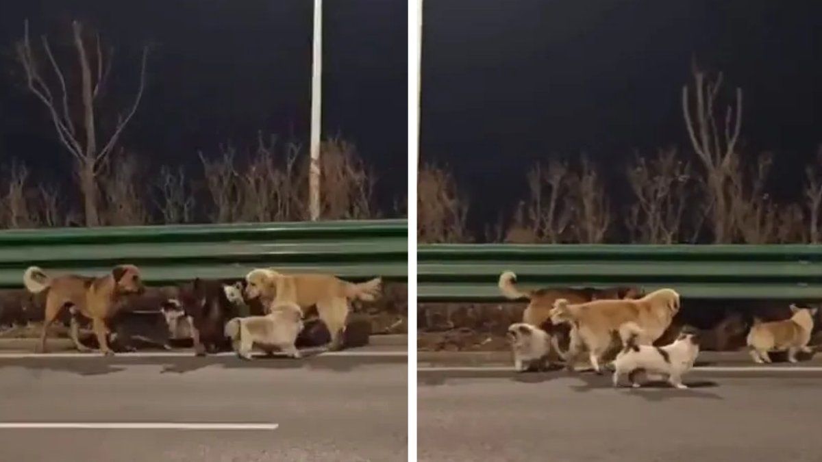 16 березня користувач мережі на ім’я Лу зняв відео, коли побачив сім собак, що йшли вздовж жвавої автомагістралі у місті Чанчунь у провінції Цзілінь. У кадрі видно сім собак різних порід, зокрема: німецьку вівчарку, золотистого ретривера, коргі, лабрадорів і пекінеса. Тварини виглядали настороженими та стривоженими, але рухалися разом.