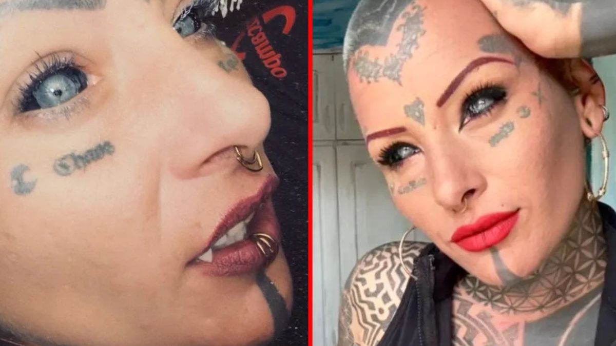 Жінка, відома в соцмережах під псевдонімом Hipnotika, перетворила себе на "монстра" в реальному житті, зробивши моторошні татуювання на очних яблуках і встановивши собі постійні ікла.