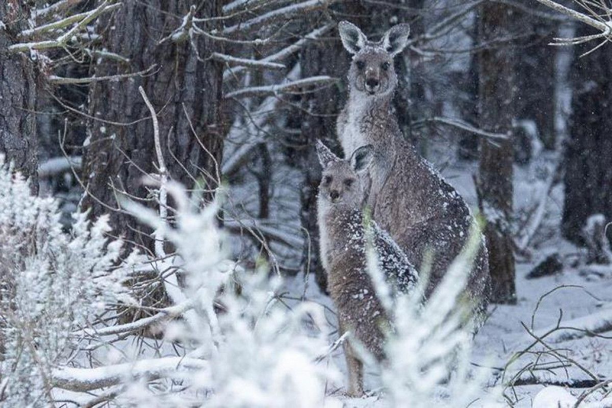 В Австралії кенгуру граються в сніжки, адже там неочікувано випав сніг